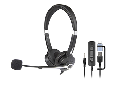 Hamlet Renova Headset modello UJX è una cuffia stereo per uso professionale con microfono regolabile che consente la comunicazione a mani libere progettata per un uso prolungato. La tripla modalità di connessione con jack audio da 3,5 mm, connettore USB-A o USB-C permette l'utilizzo praticamente con qualsiasi Computer, Notebook, Smartphone e Tablet. È la soluzione ideale per videoconferenze e chiamate vocali via internet tramite applicazioni come Skype™, Zoom, NetMeeting. Renova Headset UJS ha un design leggero e confortevole grazie all'archetto regolabile e ai morbidi auricolari on ear in similpelle imbottiti intercambiabili. Il microfono omnidirezionale, dotato di riduzione dei rumori di fondo, offre una buona qualità della voce e può essere ruotato di 270 gradi per l'utilizzo a sinistra o a destra. Sul cavo è presente il telecomando con il controllo del volume e funzione Mute. L'installazione è completamente Plug-and-Play, è sufficiente collegare il cavo al computer senza la necessità di installare software aggiuntivo.