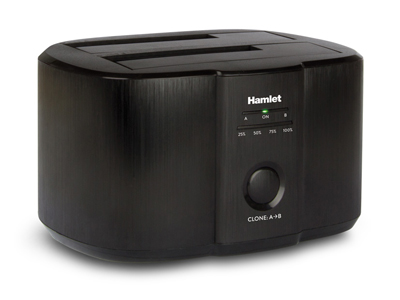 Hamlet USB 3.0 Docking Station offre un modo rapido e semplice per collegare contemporaneamente due dischi SATA da 2,5" o 3,5" alla porta USB del computer senza bisogno di installare il disco all'interno del PC o in un box esterno. Inoltre la funzione di Clonazione permette di duplicare i dati da un disco rigido ad un altro con la sola pressione di un tasto e senza bisogno del computer. Grazie alle funzioni Plug and Play e Hot-Swap, basta inserire l'hard disk nella docking station per accedere velocemente ai dati o aumentare la capacità di archiviazione del computer.